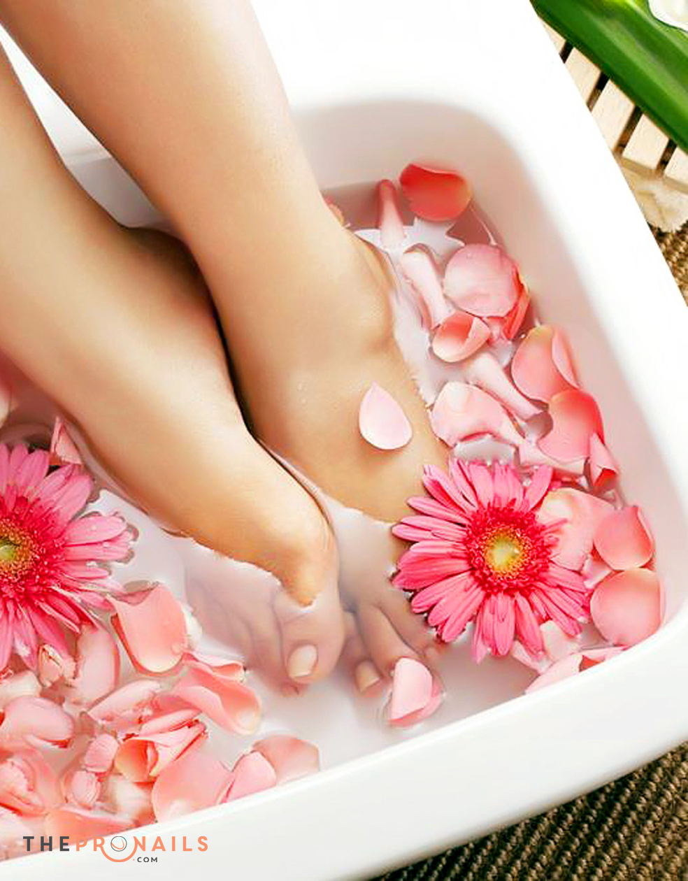 Step 2: Soak feet in an aromatic foot bath warm with water jets for massage effect